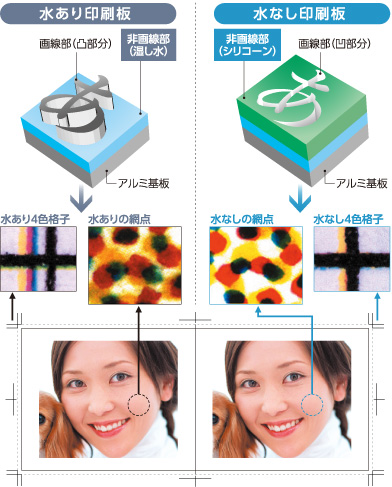 また、印刷時においては、VOC発生の大きな要因となるIPA/エッチ液/湿し水が不要となることで廃液を出さず、インキが水で滲まないため網点の再現性が高く、水による紙伸びも無いため、印刷時の版ズレが少なくなり、見当合わせの際に必要なヤレ紙や予備・損紙が削減でき、生産性の大幅な改善とコストの削減が可能となる事で、工場から排出されるCO₂の削減にも大きく効果を発揮しています。